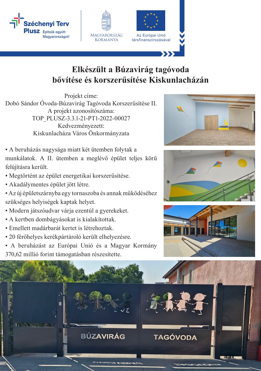 Eredménykommunikáció: Elkészült a Búzavirág tagóvoda bővítése és korszerűsítése Kiskunlacházán